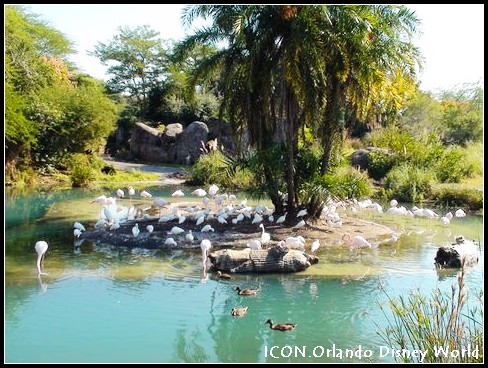 Animal kingdom lodge(動(dòng)物王國客棧),建筑面積7.2萬平方米,1293間客房,建筑布局上象一個(gè)半圓型的非洲村落,家具純木質(zhì)手雕,在茅草蓋的大廳中小溪涓涓而流。朝外望去,是寬闊的草坪,草坪上是成群結(jié)隊(duì)的長頸鹿、斑馬、鴕鳥、瞪羚和火烈鳥等各種非洲草原上的常見動(dòng)物。在這里可以“捕獲住非洲的精神與浪漫?!?客房的房價(jià)為每間199-510美元/天。