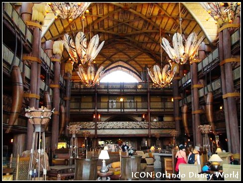 Animal kingdom lodge(動(dòng)物王國客棧),建筑面積7.2萬平方米,1293間客房,建筑布局上象一個(gè)半圓型的非洲村落,家具純木質(zhì)手雕,在茅草蓋的大廳中小溪涓涓而流。朝外望去,是寬闊的草坪,草坪上是成群結(jié)隊(duì)的長頸鹿、斑馬、鴕鳥、瞪羚和火烈鳥等各種非洲草原上的常見動(dòng)物。在這里可以“捕獲住非洲的精神與浪漫?!?客房的房價(jià)為每間199-510美元/天。