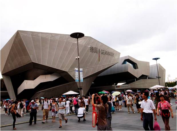 德國館表現(xiàn)“和諧城市”主題的不規(guī)則幾何體