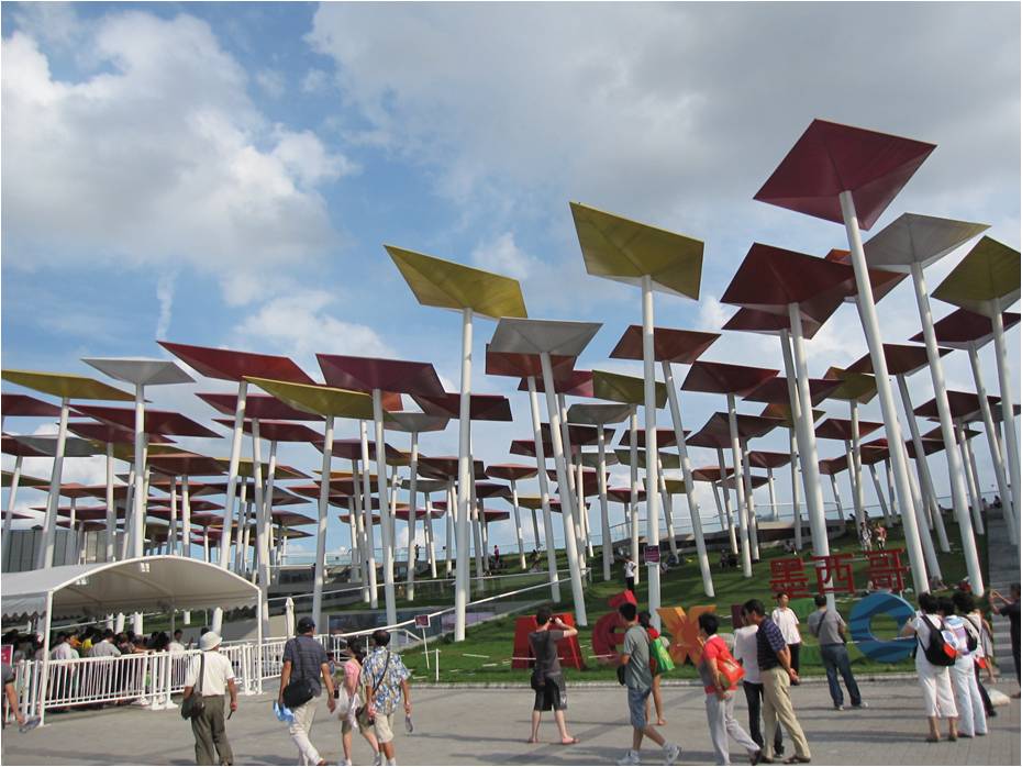 墨西哥館展館獨特的色彩斑斕的“風(fēng)箏”造型。
